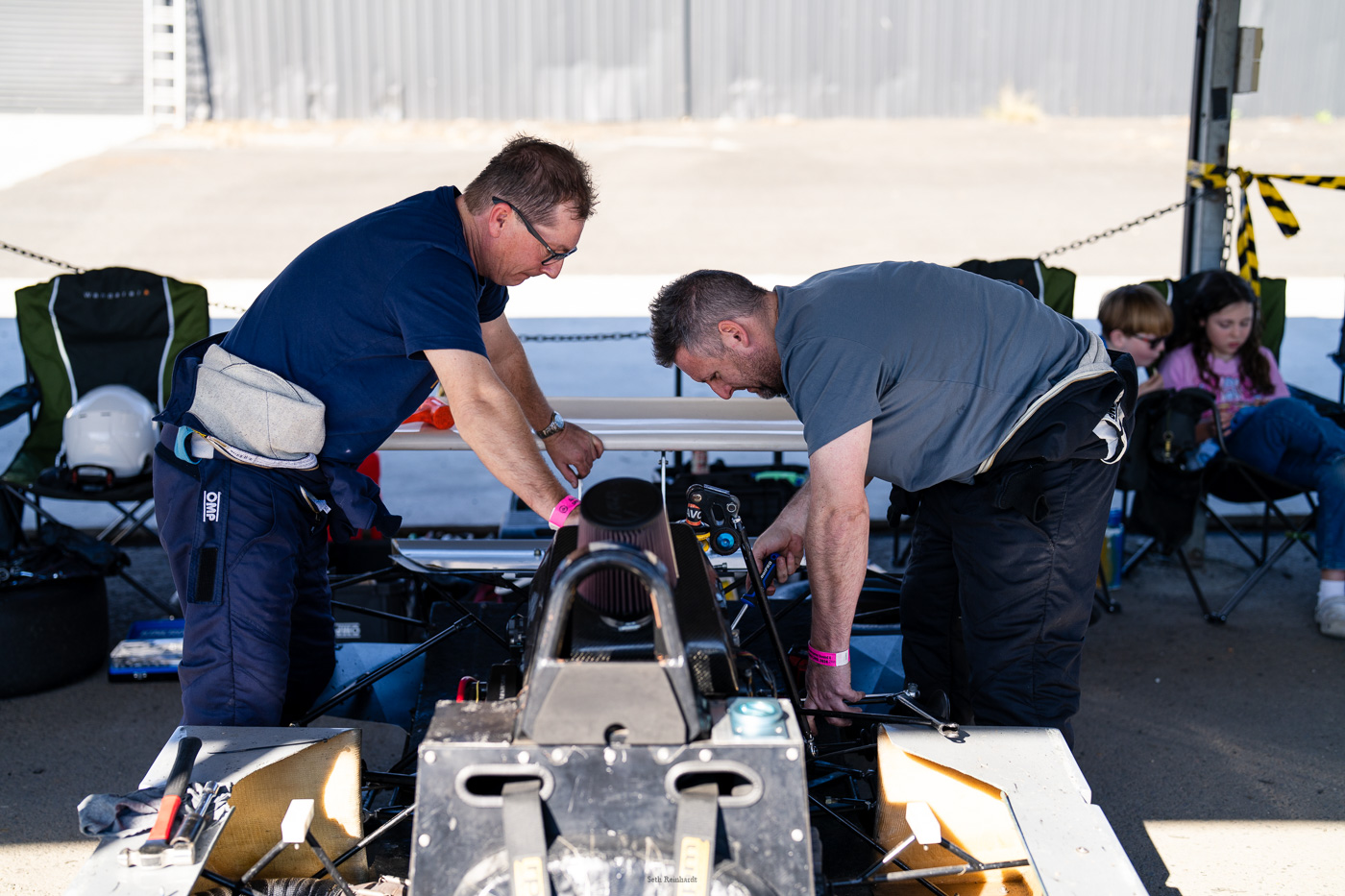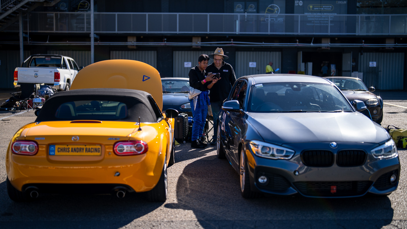 Ashton & Garth chatting in the pits between outings